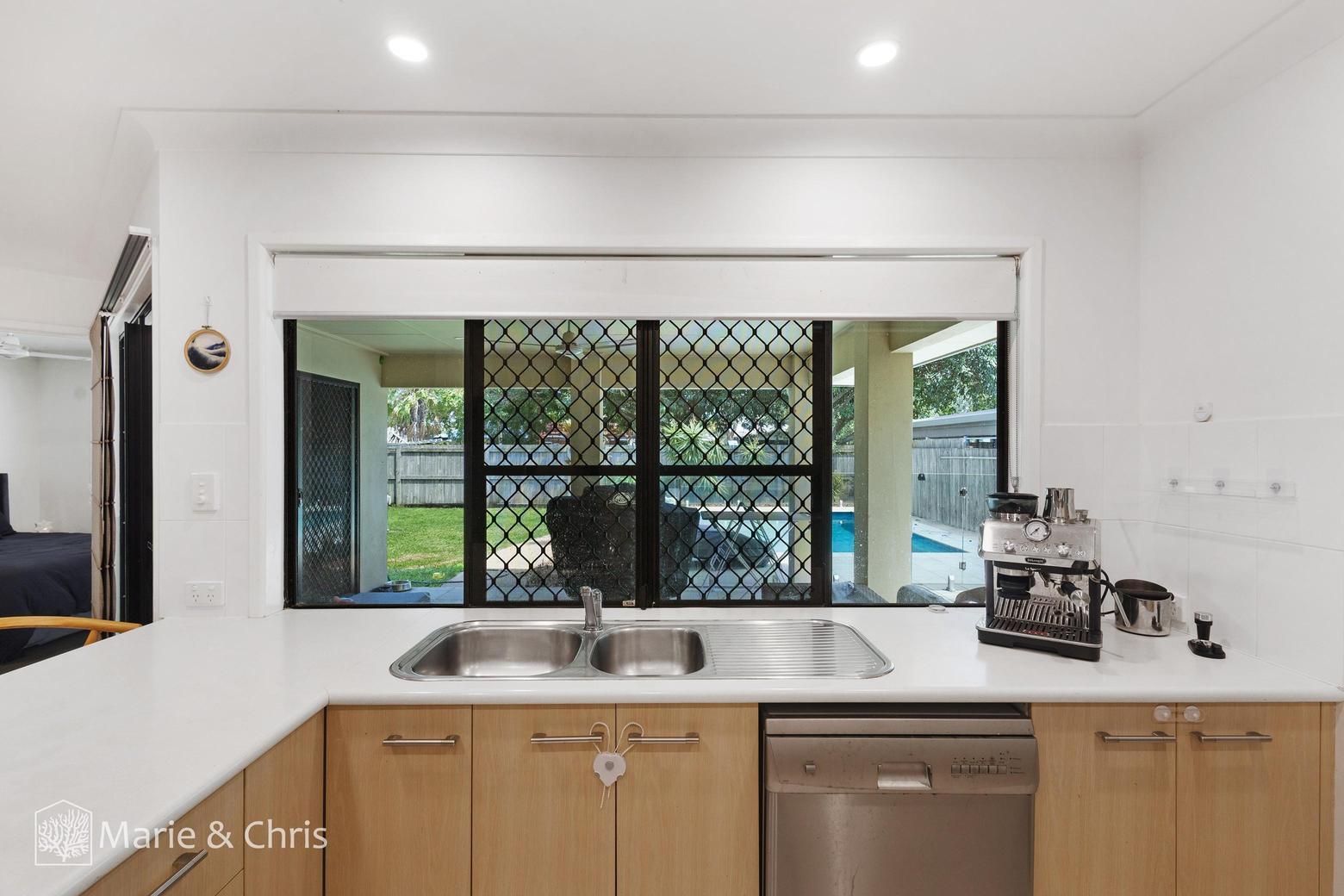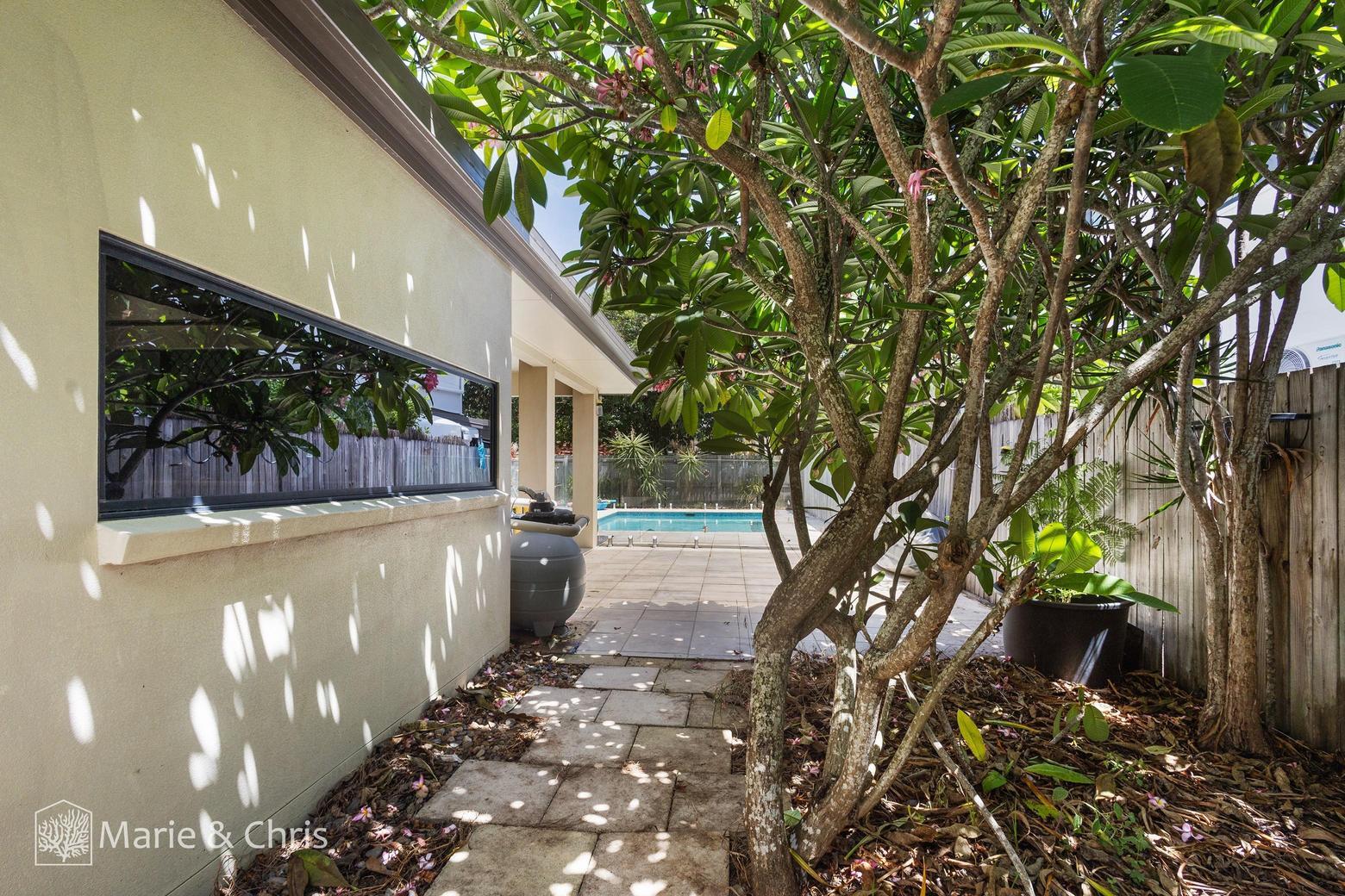Featuring four bedrooms, two bathrooms, a resort-style in-ground pool, and an expansive covered outdoor entertaining area, the home offers a private retreat just minutes from the beach.